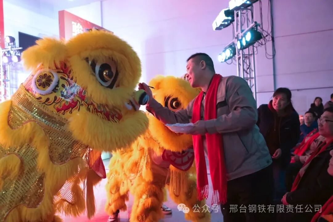 聯(lián)歡會在邢鋼搬遷項目指揮部的獅鼓表演《盛世歡歌》中拉開帷幕,張育明董事長為瑞獅點睛,預示著為新邢鋼帶來蓬勃朝氣與吉慶福運!