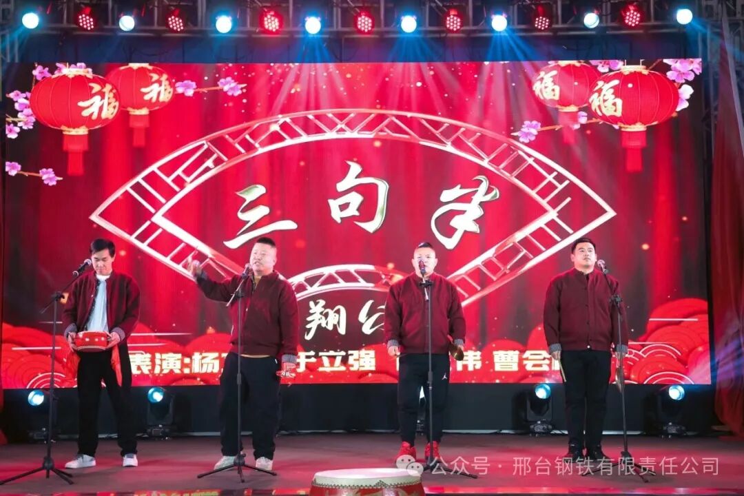 煉鋼廠、線材廠、煉鐵廠、新翔公司等二級單位、子公司錄制了《邢鋼職工賀新春》視頻,祝福邢鋼,喜迎新春,為聯(lián)歡會烘托出濃厚的節(jié)日氣氛。煉鋼廠張康建等一曲《你盡管盛開》讓觀眾感受到了春天的腳步,新翔公司曹會拴等表演的三句半《新翔戰(zhàn)鼓,奮進新程》展現(xiàn)了邢鋼人樂觀、自信、拼搏的精神風貌;能源動力部王建軍的《就戀這把土》,碳資產(chǎn)管理部蘆麗華的《世界贈予我的》,線材廠魏東等的《往事如煙》、《正義之道》,退休職工申學軍的《戲曲串燒》,或熾熱張揚,或深情款款,或戲韻醇厚,展現(xiàn)了邢鋼職工的別樣精彩;銷售公司張可等的舞蹈《上春山》,旋律歡快,舞步輕盈,讓整個舞臺春意盎然;煉鐵廠劉世沛、毛恒等的小品《考察》,現(xiàn)場“笑”果滿滿,在輕松、詼諧的表演中,展示了廣大員工對新邢鋼美好未來的信心。邢鋼搬遷項目指揮部邢闊君、王綿等的詩朗誦《鋼鐵鑄新程,奮進向未來》,以新邢鋼建設者的身份,青春激揚,誓言錚錚,抒發(fā)在新邢鋼追求夢想、實現(xiàn)人生價值的滿腔赤誠。聯(lián)歡會穿插了現(xiàn)場幸運觀眾抽獎的環(huán)節(jié),收到新春禮品的觀眾喜笑顏開。